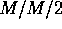 Stel dat we, in plaats van één processor met verwerkingstijd 0.5 seconde (zoals in voorbeeld 5.2), het systeem ook kunnen implementeren met twee goedkope processoren met een gemiddelde verwerkingstijd van 1 seconde per taak.